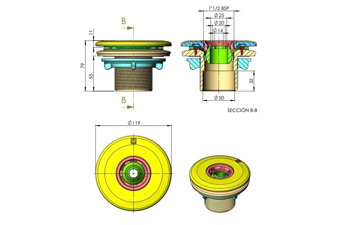 Astral richtbare inspuiter of inlaat voor folie en liner zwembaden. Het is een verstelbare uitvoer, je kan de uitvoer instellen op 14, 20 of 25mm.